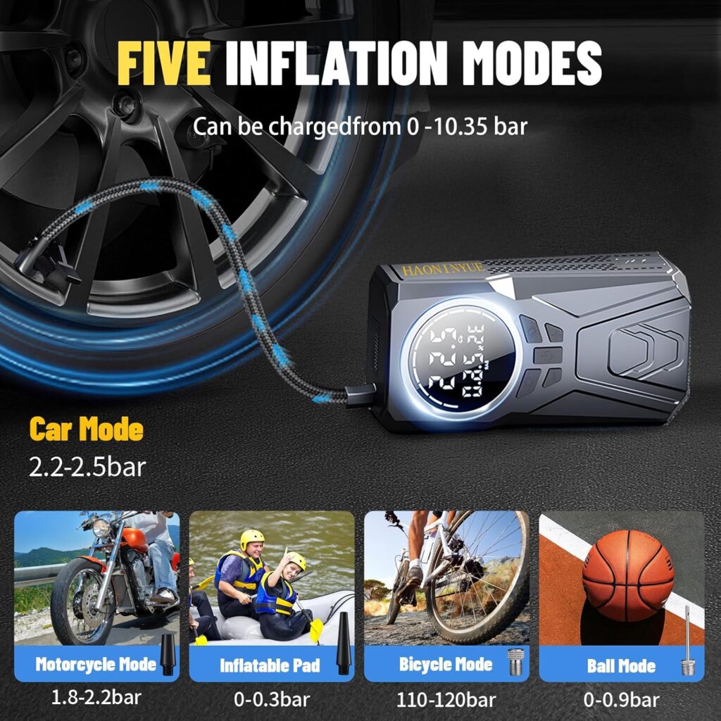 Integrated compressor inflates tires on the go, ensuring you’re never stranded with low pressure.
